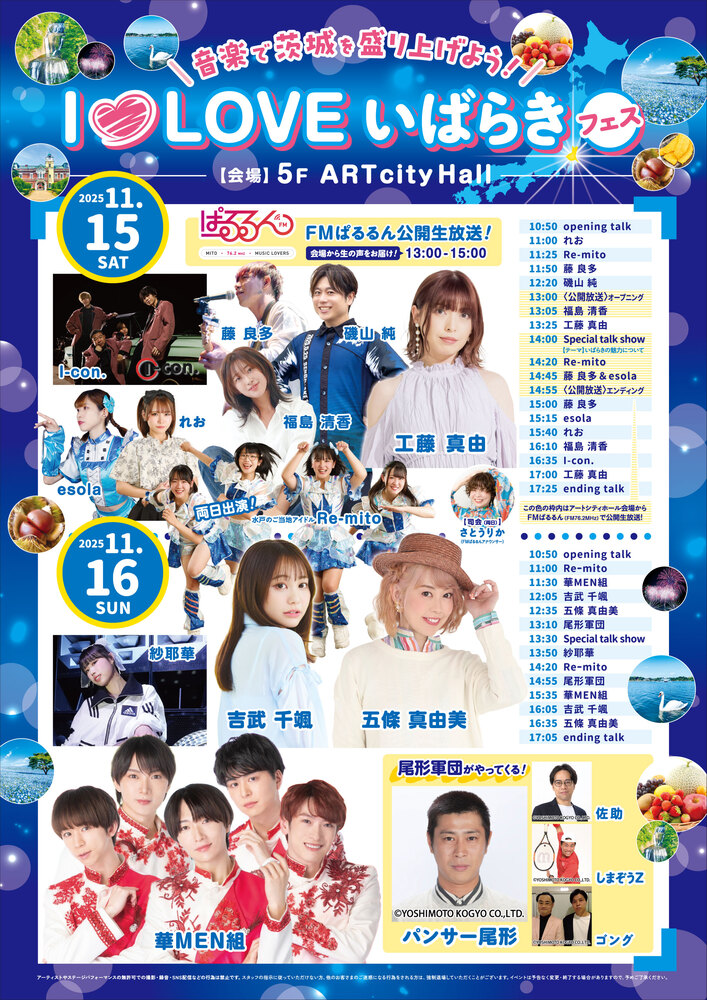 I♡LOVE いばらきFES~音楽で茨城を盛り上げよう!~@水戸 SCHEDULE 2025/11/16(日) 水戸OPA 5階 Art City Hall ◆日程 11月16日(日) ◆出演時間 13:50 ※物販あり ◆会場 水戸OPA 5階 Art City Hall 𝙸♡𝙻𝙾𝚅𝙴 いばらきフェス~音楽で茨城を盛り上げよう!~ URLをコピーする 報告する
